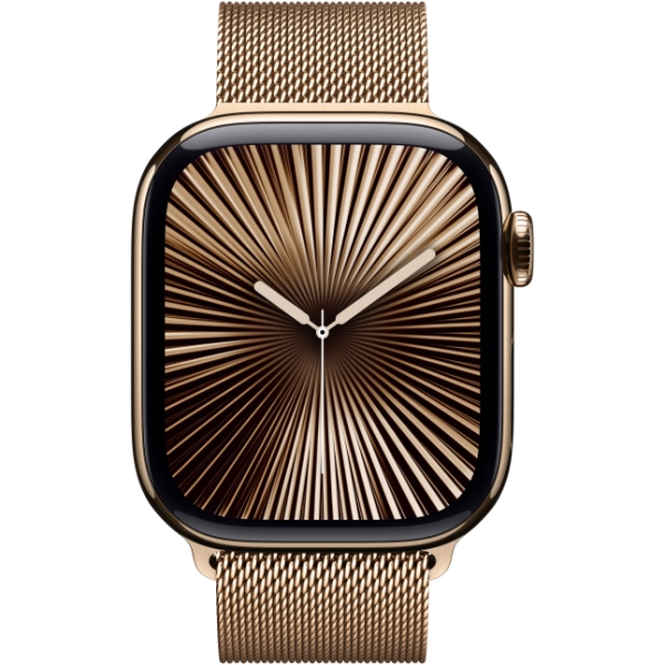 Apple Watch Series 10, 42 мм, корпус из титана цвета «титановый золотой», спортивный ремешок цвета «миланская петля» золотой (MX083)