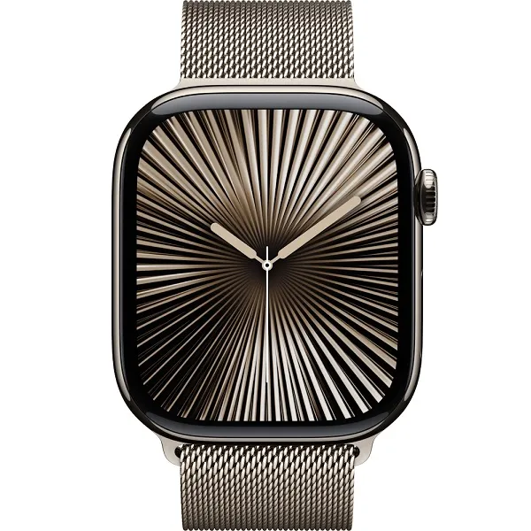 Описание Apple Watch Series 10, 46 мм, корпус из титана цвета «титановый бежевый», спортивный ремешок цвета «миланская петля» бежевый S/M (MC7Q4)