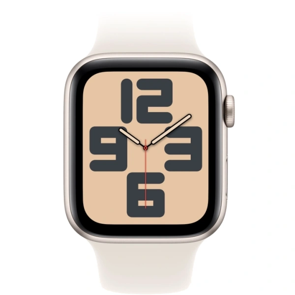 Умные часы Apple Watch SE 2024, 44 мм, корпус из алюминия цвета «сияющая звезда», спортивный ремешок цвета «сияющая звезда» M/L (MXGU3)